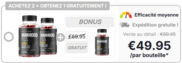En ce moment, vous pouvez commander le complément Manhood Plus avec 82 % de réduction + livraison gratuite. C’est une offre à durée limitée, qui ne sera pas disponible longtemps.